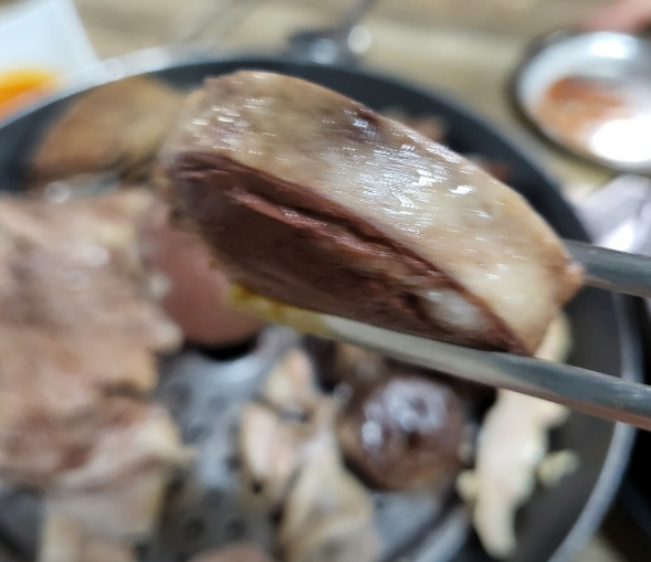 수육 맛을 보니 진짜 쫄깃쫄깃하게 잘 삶았습니다. 냄새도 안나고요.