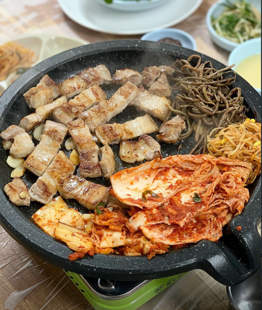 고성 맛집 삼포마당 넓은집은 직접 재배한 야채를 무한리필로 먹을 수 있는 고깃집인데요, 김치와 같이 볶아서 고사리와 멜젓에 찍어먹으면 정말 꿀맛입니다.