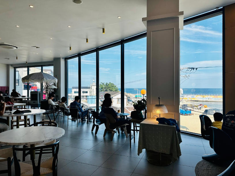신관 4층은 바다가 펼쳐져있는 오션뷰 카페로 젊은 사람들이 멋진 인스타 감성을 위해서 인생샷을 찍기도 하는 곳이랍니다. 또한 5층 루프탑에서는 파도소리를 들으면서 바다 바람을 쐴 수 있는 곳이고요. 물론 추울 때는 이용하기가 좀 어렵답니다.