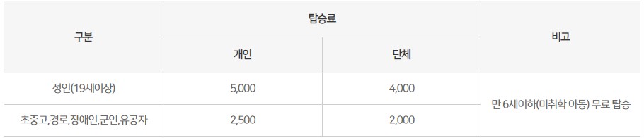 - 이용요금(탑승료 이외 식비 등은 참가자 개인 부담)