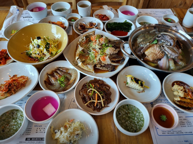 세트메뉴가 보리굴비랑 꽃게장이랑 꽃게탕이 나오는데, 가격이 싸진 않지만 정말 꽃게와 굴비를 푸짐한 한 상으로 맛볼 수 있는 곳이기 때문에 관광객으로서 한번은 군사에서 가볼만한 곳 같습니다.