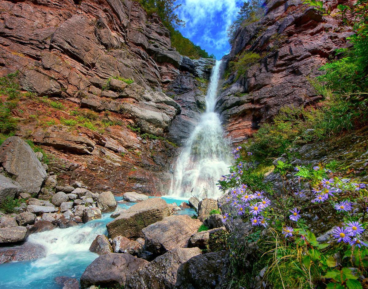 이 폭포는 석회질 성분 때문에 신비롭고 비취색을 띠는 물빛이 특징인데요, 특히 수량이 많은 여름에는 웅장한 물기둥과 물안개가 형성되어 장관을 이룹니다. 여래사 주차장에서 약 300미터 떨어져 있어, 대략 15분 정도 트레킹을 통해 쉽게 접근할 수 있습니다.