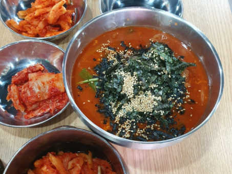 그리고 얼큰순두부도 맛보았는데, 사이즈는 작지만 국물 맛이 깔끔하고 기름기 없이 맛있었어요. 여기에 된장 비지찌개도 나오는데, 이 찌개도 의외로 맛있어서 밥 한 공기를 금세 해치웠답니다.