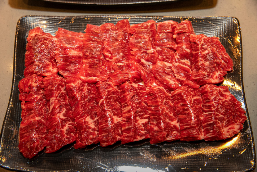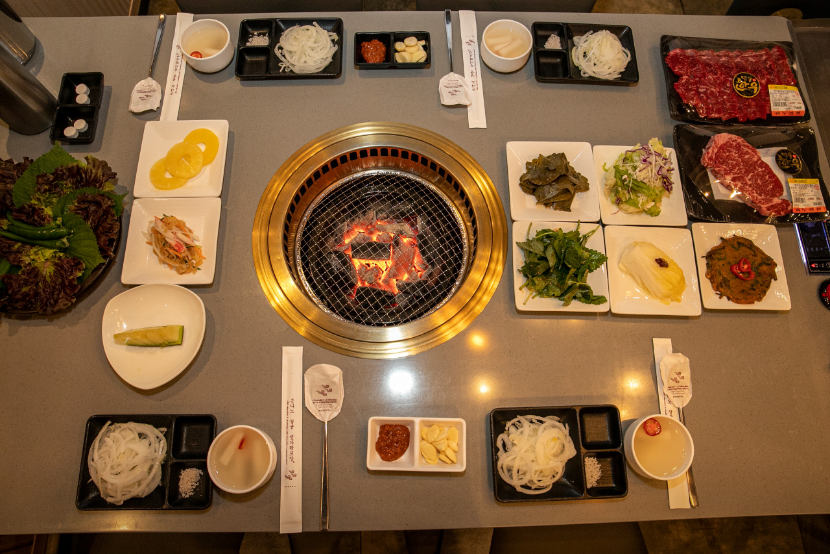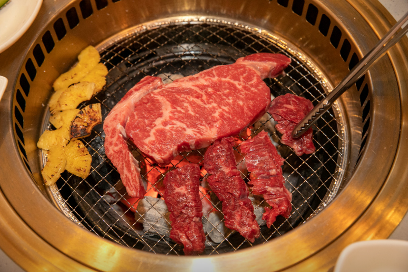 식당 안의 좌석 배치는 편안하고 널찍했어요. 고기를 직접 구울 수 있는데, 가위와 집게가 셀프로 구비되어 있어서 편리했죠. 화장실도 깨끗하고 넓었고, 심지어 와인 냉장고도 있었어요.