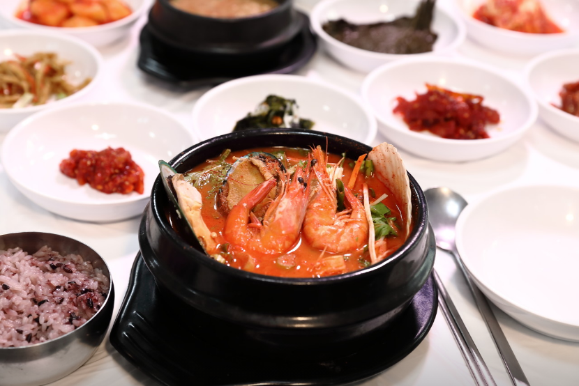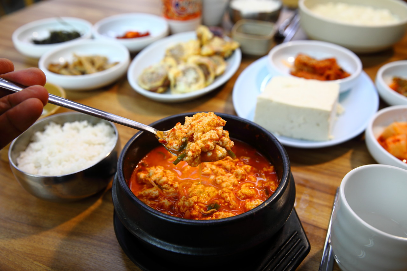식당 안에 들어서면 기본 반찬을 줘요. 평범한 수준이지만 나쁘지 않았어요. 제가 주문한 해물순두부는 2만 원으로 가격이 조금 비싼 편이었지만, 해산물이 푸짐하게 들어 있어서 가격이 아깝지 않았어요. 소라, 새우, 게, 전복까지 들어 있어서 해장하기에도 좋았어요.