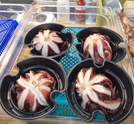 사장님이 먹을 수 있는 생선과 나중에 먹어야 할 생선을 잘 알려주셨어요. 통통한 생선은 속까지 익는 데 시간이 걸리니까요. 우리는 고등어와 삼치를 나중에 먹고 나머지는 먼저 먹었어요.