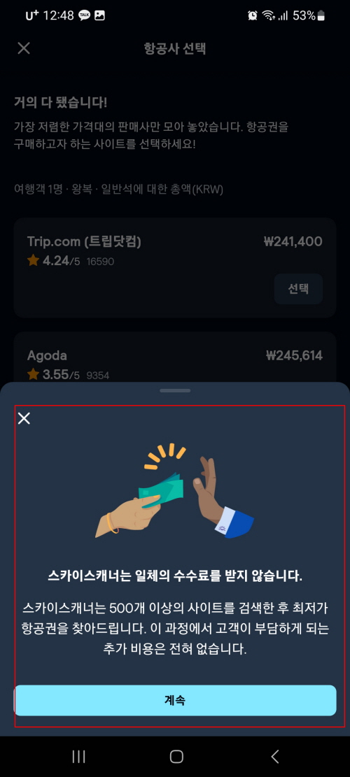 스카이스캐너는 일체의 수수료를 받지 않습니다.