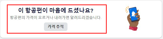 9. 혹여 마음에 드는 항공권이 있더라도 좀 더 고민을 하고 싶다면 이렇게 가격 추적 알림 받기를 통해서 가격의 변동을 실시간으로 파악할 수 있습니다.