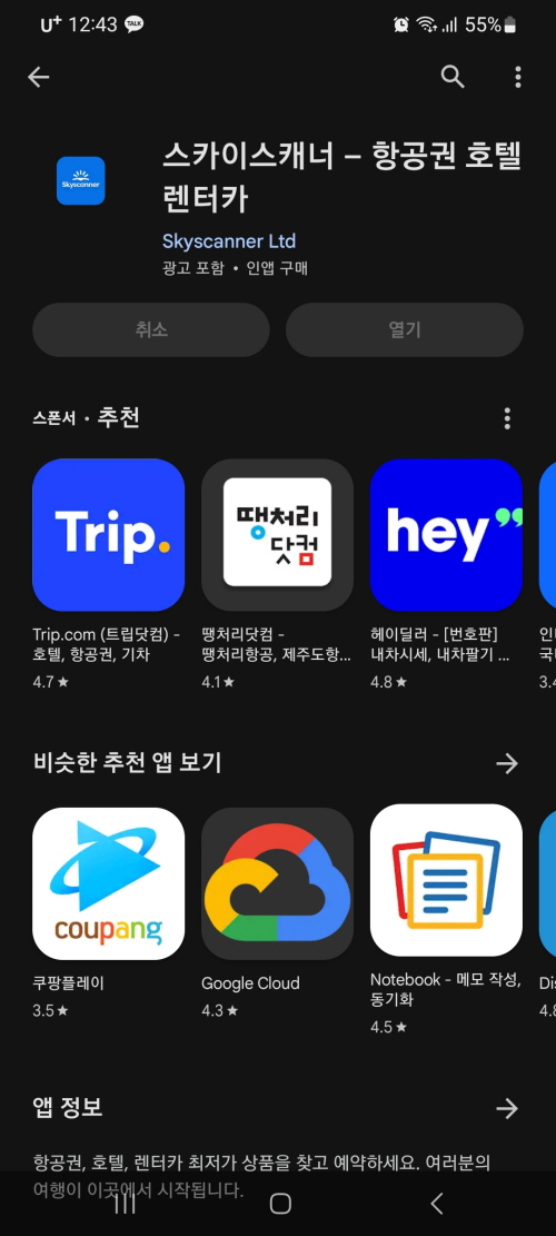 ⬇ 스카이스캐너 앱을 먼저 다운 받아주시길 바랍니다.