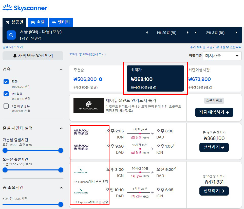 항공권 가격 비교 사이트 스카이스캐너 이용 꿀팁