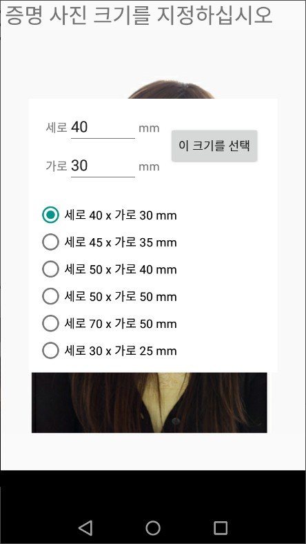 어플을 켜서 내가 촬영한 사진을 내게 필요한 사이즈로 선택해서 진행할 수 있습니다.