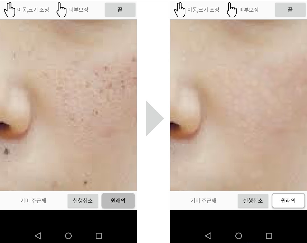 어플을 사용해서 잡티등을 보정해주세요. 과도하지 않게요.