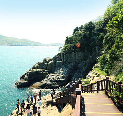 산책로를 따라 걷다 보면 숲길이 나오고, 조금 험난한 등산로도 나타나는데, 연안 바다목장도 볼 수 있어요. 이곳은 수산 자원량을 회복시키기 위한 시스템으로, 무분별한 수산자원 이용으로 황폐해진 연안 바다에 수산생물이 살 수 있는 공간을 제공합니다.