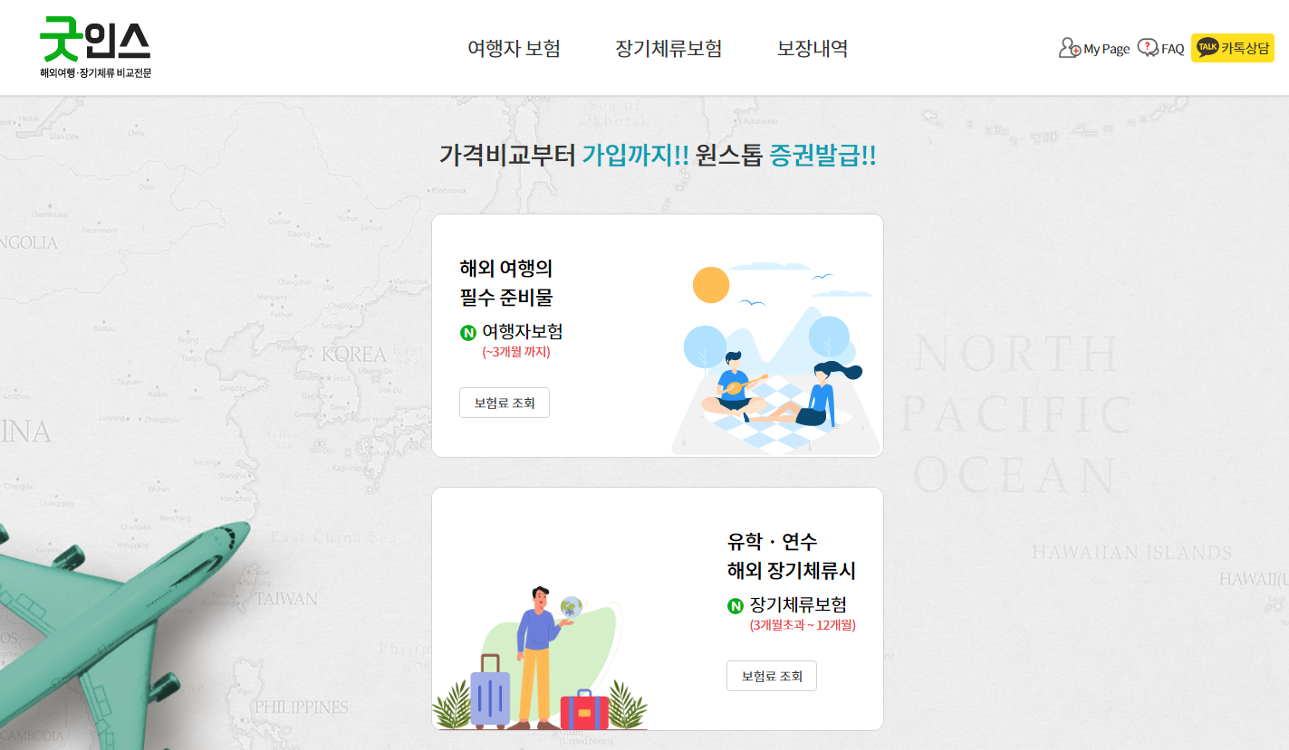 추천드리는 여행자보험 가격비교사이트는 👉굿인스라는 가격비교사이트인데요, 어차피 보험사의 보험상품은 변하지 않습니다.